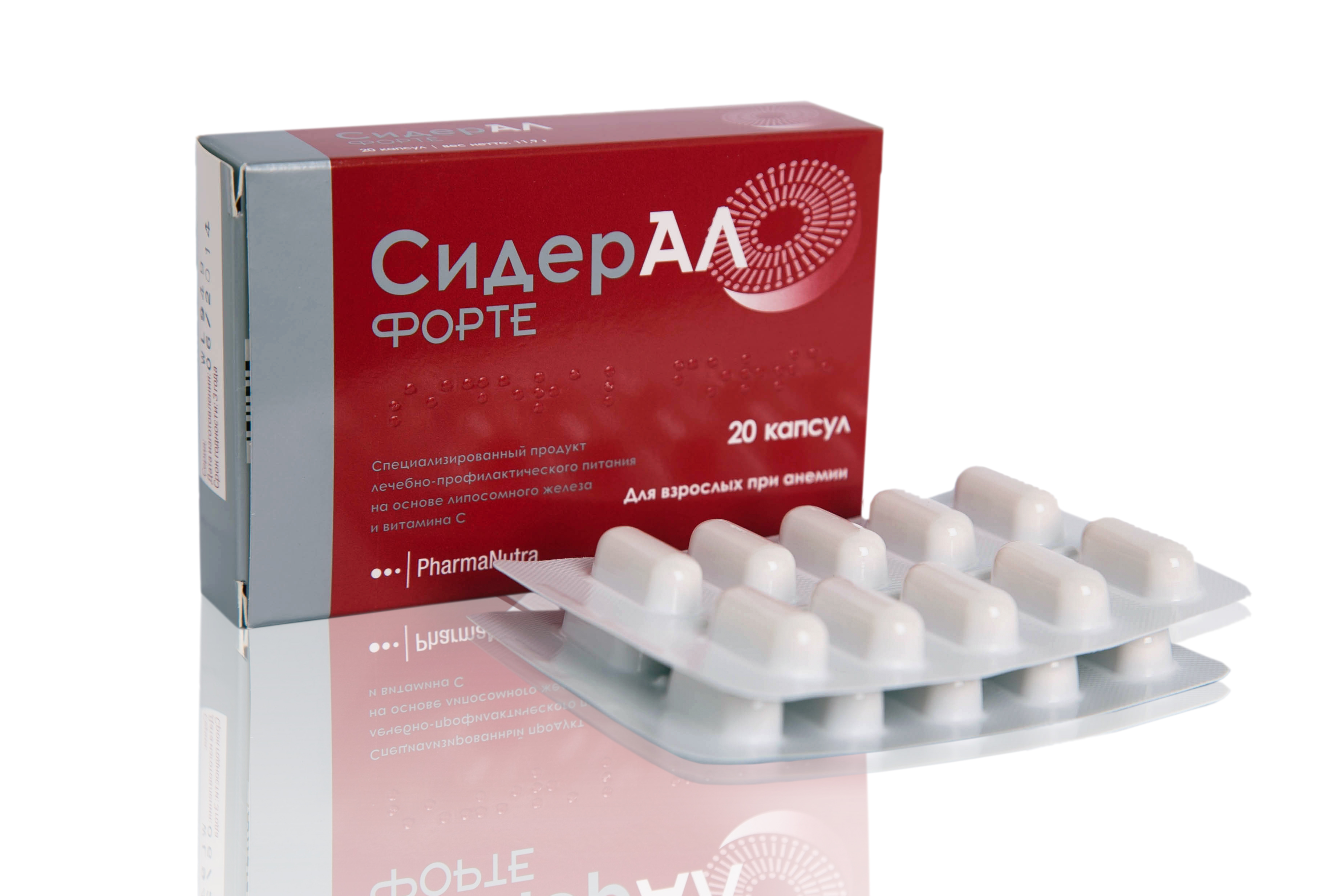 Каждая капсула «СидерАЛ Форте» содержит 30 мг железа в сочетании с витамином С. Препарат показан пациентам с железодефицитной анемией любого генеза, в том числе вследствие острой кровопотери или хронически низкой кишечной всасываемости, а также анемии, вызванной инфекционными или хроническими заболеваниями, то есть при таких формах анемии, при которых традиционные препараты железа неэффективны.